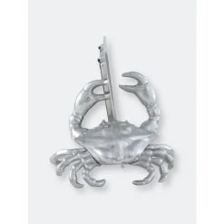 Positioning itself in the lower-left corner of this 4×6 Crab Picture Frame, a long-legged crustacean searches for a grip sturdy enough to lift and carry this piece away with its claws. The creature’s pointy shell and ribbed features give this handmade, aluminum statuette a realistic appeal.