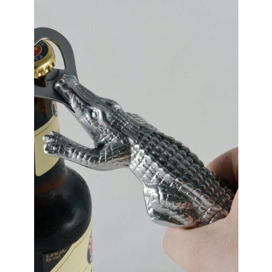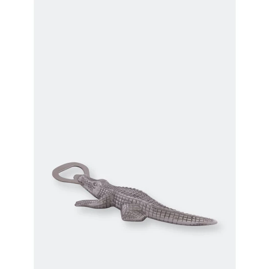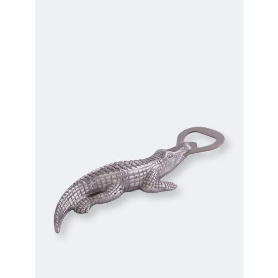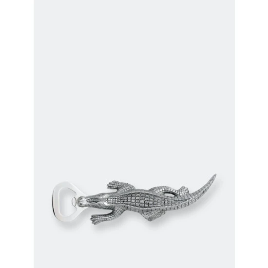 Rip the cap off any beer with this best-selling Alligator Bottle Opener from Arthur Court.Wonderfully detailed in Arthur Court’s signature aluminum, this scaly alligator bites down, holding the stainless steel bottle opener with its powerful jaws. The remarkable definition in the creature’s hide gives this statuette like opener a rough, naturally appealing texture.