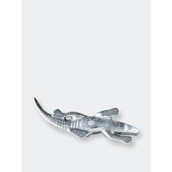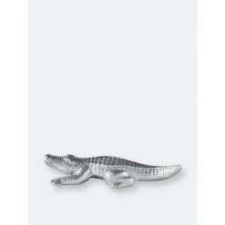 Continue your animal-themed table accents with these Small Alligator Figurines from Arthur Court.An intricately detailed alligator rests in a relaxed posture, gazing up at the people seated around it. Realistically fashioned in sand-cast aluminum, this statuette is perfectly suited to strike up a conversation at the table.