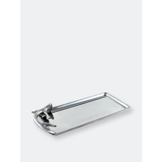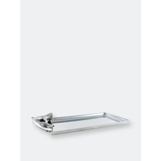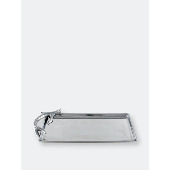 Present the polished brilliance of this 6×12 Antler Tray from Arthur Court at your next party.A realistic antler swings around the left edge of this piece to create a textured handle, which complements the interior’s sleek finish. The handmade, aluminum tray is perfect for buffet-style parties, but is also tasteful enough to stand on its own.