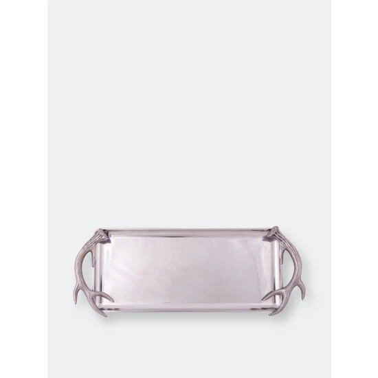 Sweeping horns adorn the sides of this sleek, 19-inch tray, creating unique, textured handles. Handcrafted in sand-cast aluminum, this tray’s interior gleams brilliantly against the intricate detail within the antlers.Show off your outdoorsy side with this sophisticated Antler Oblong Tray from Arthur Court.