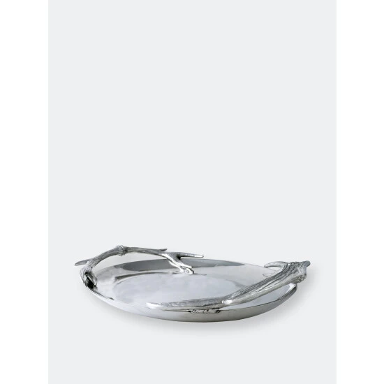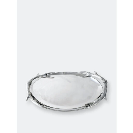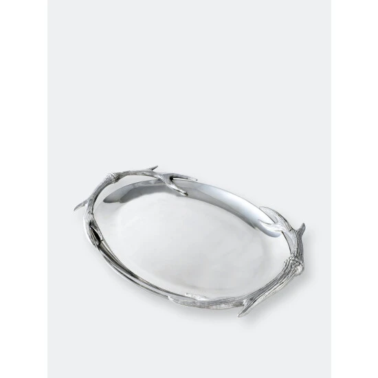 Let Arthur Court’s best-selling Antler Oval Platter help host your next party. Realistically fashioned burrs infuse two antlers together on both sides of this piece, extending forks in opposite directions along the edge.The rustic appeal of the design accents the gleaming interior of this handmade, aluminum platter.