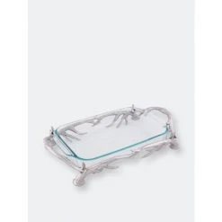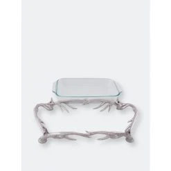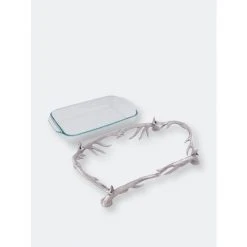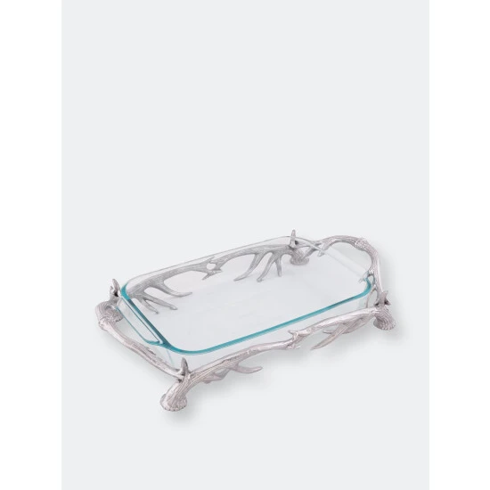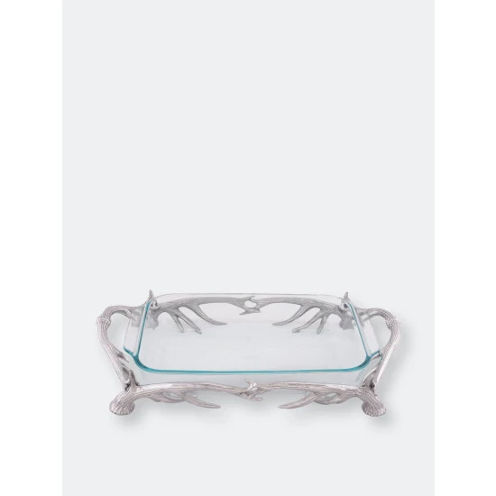Intrigue your guests with this uniquely fashioned 3-qt Pyrex Antler Holder from Arthur Court.Handcrafted antlers link together to form the base and handles of this piece as the Pyrex fits seamlessly into the supporting arms of the aluminum design. The Pyrex is removable and dishwasher safe.