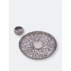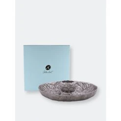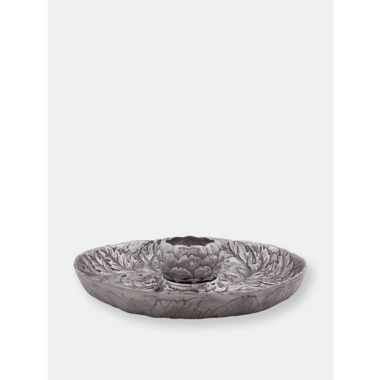 Guaranteed gorgeous, Arthur Court’s unique Artichoke Chip and Dip Serving set is a crowd pleaser. The extra-large platter shines with a bas-relief pattern of intricate, feathery artichoke leaves. A dip bowl shaped as a Globe Artichoke sits center stage to hold your most delicious creations.