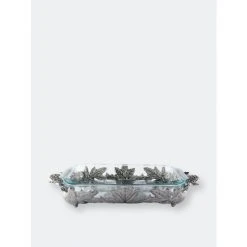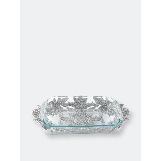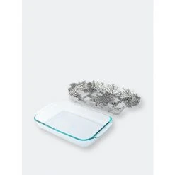 At Arthur Court design we know that food presentation is important and is just as essential to the success of a dish as its taste and flavor. That’s why our passionate designers and expert artisans conspire to bring the most elegant casserole dish holder. Hand-crafted in sand-cast aluminum to last a lifetime, our decorative serving tray is heat resistant and perfectly fits inclued 9”x13” pyrex glass. Makes your dining table look great while protecting your furniture and counters from the hot baking dish. Size: 3.5″ T x 11″ W x 19″ L Care: Wash aluminum by hand with mild dish soap and dry immediately. Pyrex Glass Glass is dishwasher safe.