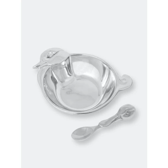 Duck is normally a delicacy, but Arthur Court’s Baby Duck Keepsake Bowl and Spoon Set is an affordable luxury.The bird’s rounded head and long, flat bill create the spoon’s handle, while another duck’s smooth cheeks and swishing tail accent the bowl’s rim. Both of these handmade, aluminum designs capture the tranquility of these animals in their soft expressions.