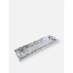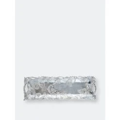 Depict a beautiful, spring scene within your serveware using this Large Butterfly Oblong Tray from Arthur Court.Magnificent butterflies float among flowers and leaves on the sides of this piece as twisting vines create an openwork border around them. Handcrafted in Arthur Court’s signature aluminum, this tray displays tremendous detail in the patterned wings of each insect.
