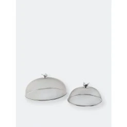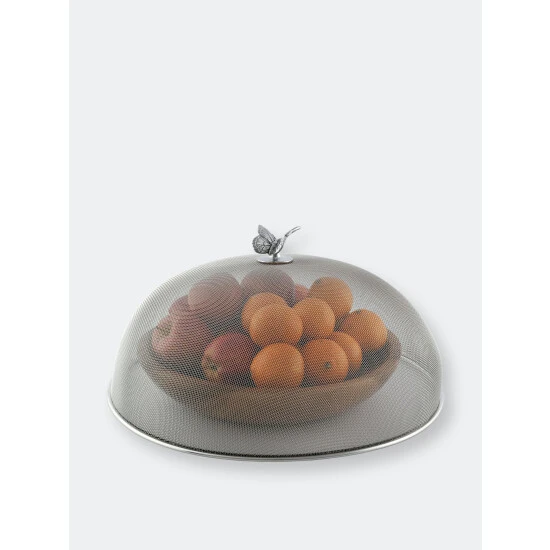 Beautiful design accents and functionality are combined in this picnic cover, that will keep your fruits, snacks, cheeses and more safe from insects, little hands and sudden weather conditions. 10.5 inch diameter, 5 inches to highest point.