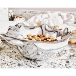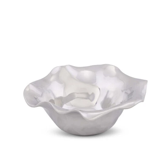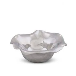 Only Arthur Court designers would imagine modern serve-ware inspired by a fairy tale village. High shine, wavy edge Carmel Collection dip bowl holds 2 cups of anything you want to serve in it. An eye-catching, modern, romantic table top bowl for any room in the house. Arthur Court’s wavy edged Carmel Collection is California inspired by the fairy tale village of Carmel-by-the Sea. Nestled into the rolling hills where California’s central coast meets the gentle waves of the Pacific, the magical hamlet is filled with storybook cottages wearing roofs that swoop and roll, echoing the undulating waves of the sea. Size: 8″ x 7″ Bowl 2.5 Tall Care: Hand-wash in warm, soapy water, dry thoroughly.