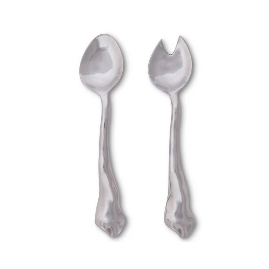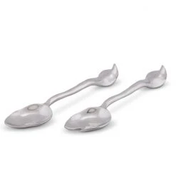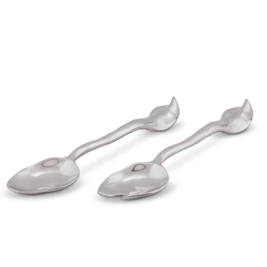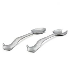 Add the finishing artistic touch to salad courses with these shining Arthur Court salad servers from Arthur Court. As part of the Carmel Collection, the 11-inch two-piece service set goes perfectly with the Carmel salad bowl, though this uniquely designed spoon and fork set enhances the appearance of any serving piece in your dining table setting. The salad servers are handcrafted from premium signature aluminum alloy for long-lasting wear and made in compliance with FDA food-safety regulations. Clean these utensils by hand with a mild soap and hand-dry to avoid water spots from forming. The curvy design of these salad servers calls forth thoughts of the rolling hills, undulating waves and storybook cottages that are reminiscent of the village of Carmel-by-the-Sea in California. Arthur Court’s wavy edged Carmel Collection is California inspired by the fairy tale village of Carmel-by-the Sea. Nestled into the rolling hills where California’s central coast meets the gentle waves of the Pacific, the magical hamlet is filled with storybook cottages wearing roofs that swoop and roll, echoing the undulating waves of the sea. Size: 11″ Long Care: Hand-wash in warm, soapy water, dry thoroughly.