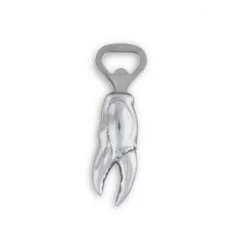 Grab by Crab could be the name of Arthur Court’s Crab Claw Bottle Open. The unique handle is a replica of a king crab claw crafted in signature aluminum alloy. Finished with a sturdy plated head, this a the perfect bottle opener for any beach themed part A sturdy plated head that can make quick work of opening almost any bottle becomes a beach style statement with Arthur Court’s signature aluminum alloy crafted into a unique handle, depicted as a replica of a king crab claw. This is the only bottle opener you will want for a beach party and a perfect gift for that hard to buy for guy who likes anything ocean themed. Size: 5.5″L / 1.5″W / 1″T Care: Wash by hand with mild dish soap and dry immediately – do not put in dishwasher.