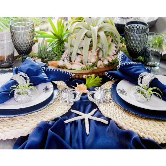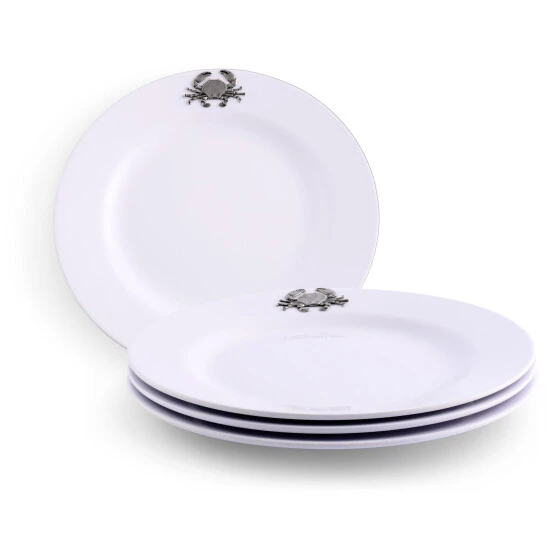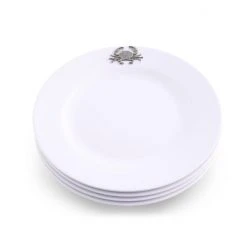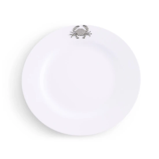 It is said that the best color for presenting food is white – and Arthur Court agree! White dishes make food look more elegant and appetizing. Our pure white Melamine resin is durable, fire and heat resistant and virtually unbreakable the perfect plate for outdoor dining. In true Arthur Court style, a detailed pewter metal crab is attached to rim to create classic dinnerware that will stand up to lunch and dinner at the beach or around the pool. Size: 10″ Diameter Care: Dishwasher Safe with low heat and non acidic detergent