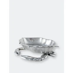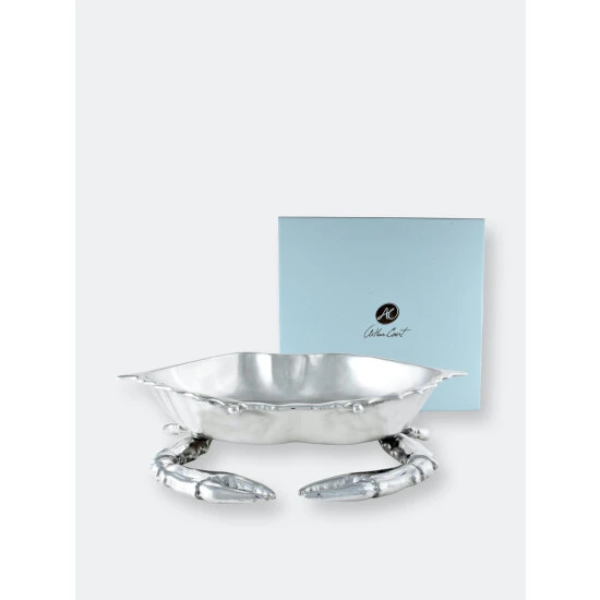 Look at salads differently through the engaging design of Arthur Court’s Crab Salad Bowl. Beady eyes stare out from the crab’s hollowed shell, while jagged edges still give the hexagonal bowl a realistic feel. The crustacean’s claws feature realistic, ribbed features, which add to the beautiful craftsmanship of this handmade, aluminum piece.