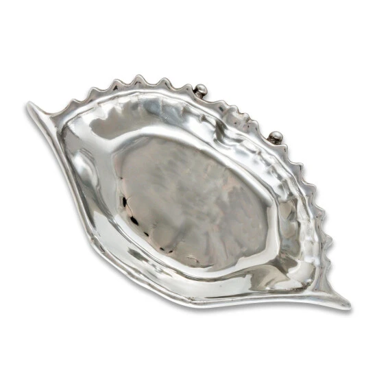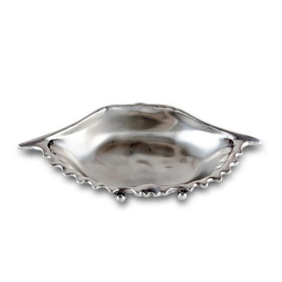 Even without its customary claws and legs, Arthur Court’s Small Crab Bowl makes a handsome addition to your Coastal Collection. This limbless piece focuses on the jagged texture of the crab’s shell and its beady, penetrating eyes. Handcrafted in sand-cast aluminum, this design features extended edges that create perfect handholds to carry any seafood salad or entrée. Size: L: 10.5″ / W: 5.5″ / H: 1.5″ Care: Wash by hand with mild dish soap and dry immediately – do not put in dishwasher.
