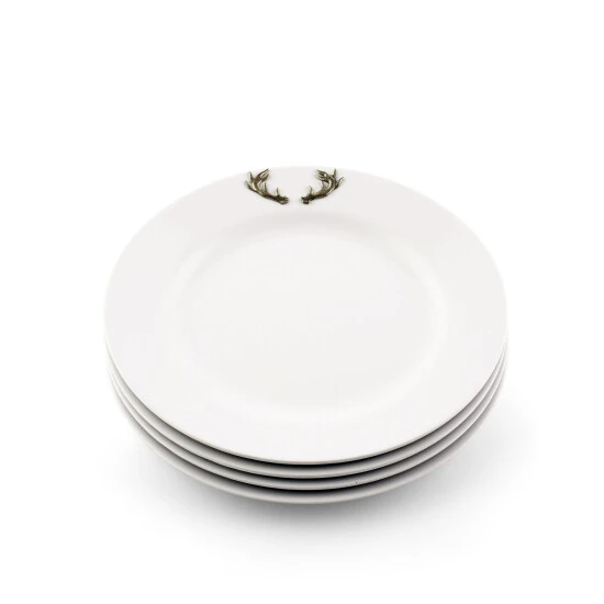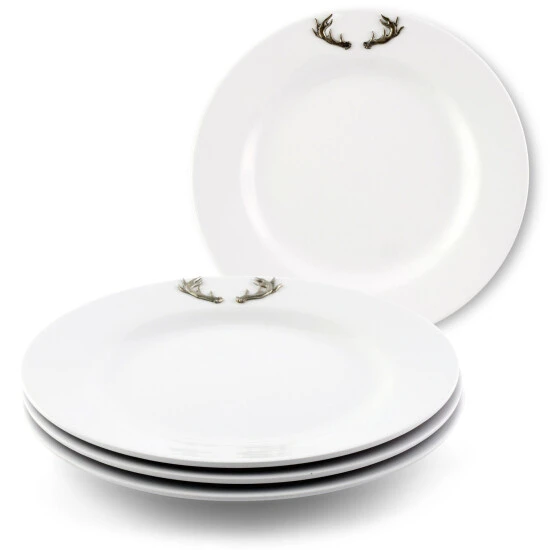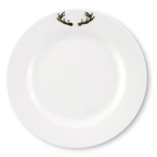 It is said that the best color for presenting food is white – and arthur court agree! White dishes make food look more elegant and appetizing. Our pure white melamine resin is durable, fire and heat resistant and virtually unbreakable the perfect plate for outdoor dining. In true arthur court style, a detailed pewter metal deer antlers is attached to rim to create classic dinnerware that will stand up to outdoor use but formal enough for indoor dining.