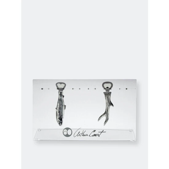 Hang your entire Coastal Collection, or a variety of your favorite pieces, on Arthur Court’s Bottle Opener Display Stand.This stand feautres six, two-pronged hooks that hold each opener at the head. Arthur Court’s lustrous, aluminum designs glisten against the acrylic background, while the Arthur Court name and logo display on the bottom for an elegant finish.