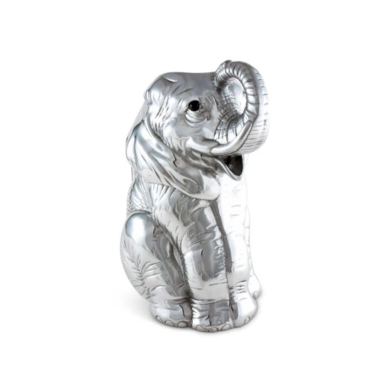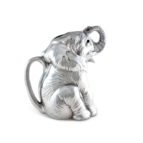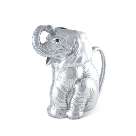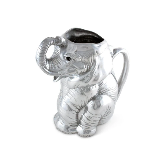 Lounge and enjoy the striking realism of Arthur Court’s Elephant Pitcher. Mirroring a dog’s obedient posture, this elephant sits on its hind legs, patiently waiting for someone to grab the handle on its back. Circular feet and creased skin give this creature lifelike detail, while its mouth serves as the spout for this handmade, aluminum pitcher. Size: L: 8.0″ / W: 5.0″ / H: 10.0″ Care: Wash by hand with mild dish soap and dry immediately – do not put in dishwasher.