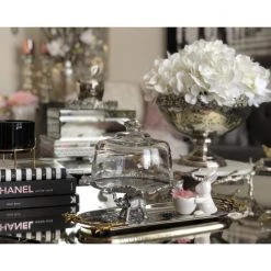 Preserve the freshness of baked goods using our Elephant Plate with Glass Dome A sculptural work of metal art, the base depicts an elephant standing at the base of a tree as its leafy crown fans out to support the glass dome. Heavy lines distinguish each leaf and ripple in the tree trunk of this handmade, aluminum design.Please note, this is a small stand designed to hold a few cookies or a couple of cupcakes or muffins.