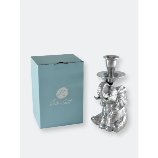 To welcome positive energy to your home or office, place one or more of Arthur Court’s Elephant Candle Holders facing the front entrance. The raised trunk on our delightfully detailed Elephant figure symbolizes good luck. It also supports the rimmed taper candle cup on these enigmatic figures of the gentle giant.