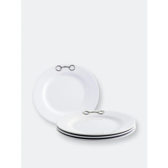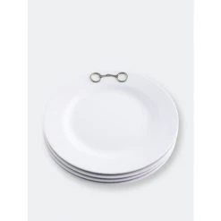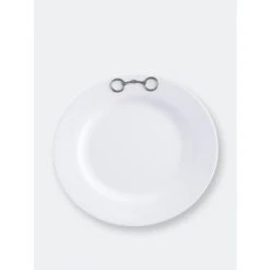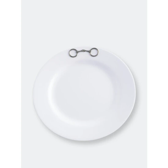 It is said that the best color for presenting food is white – and Arthur Court agree! White dishes make food look more elegant and appetizing. Our pure white Melamine resin is durable, fire and heat resistant and virtually unbreakable the perfect plate for outdoor dining. In true Arthur Court style, a detailed pewter metal Equestrian Bit is attached to rim to create classic dinnerware that will stand up to outdoor use but formal enough for indoor dining.