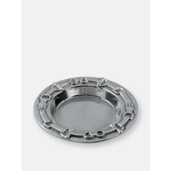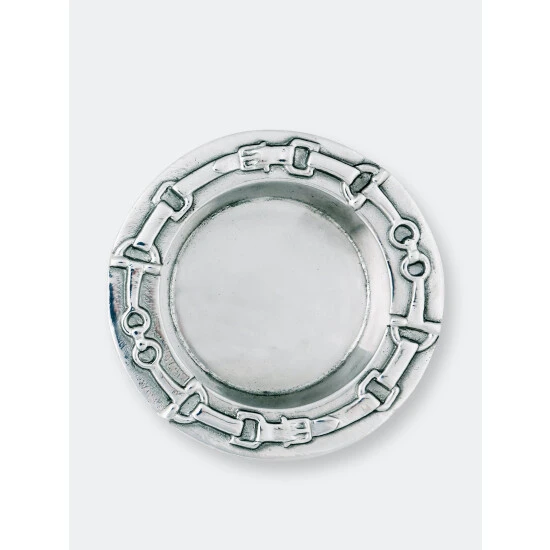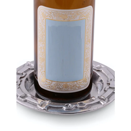 Turn riding into a romantic evening with this Equestrian Wine Coaster from Arthur Court.Leathery straps connect bits through interlocking squares to create a textured border around the edge of this piece. The symmetrical design accentuates the otherwise smooth finish of this handmade, aluminum coaster.