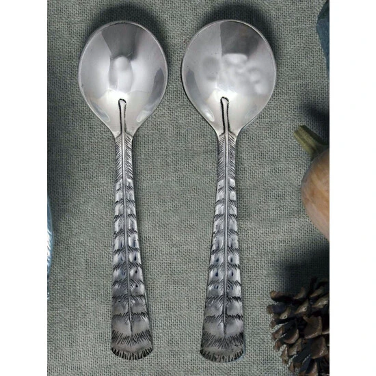 Classy and elegant Salad Servers for every day use, that will add a touch of unique beauty to any table. The handles seem like real turkey feathers castet in lustrous aluminum and they are a great match with the Arthur Court Turkey Serving bowl – A perfect couple especially for Thanksgiving.