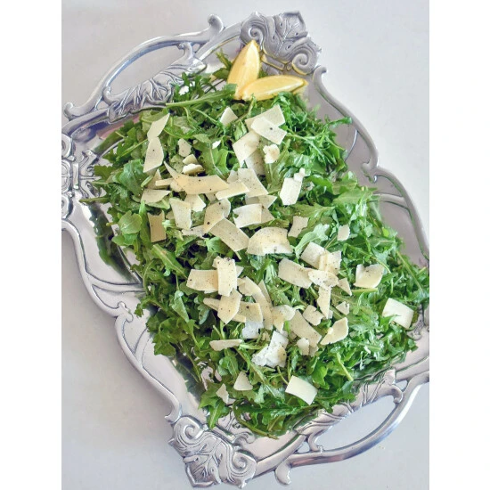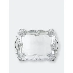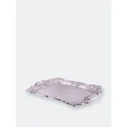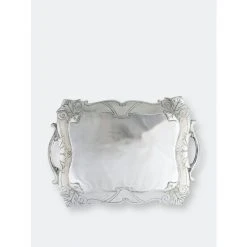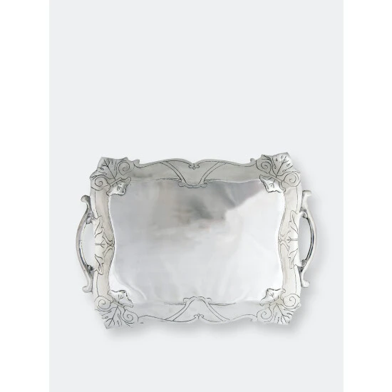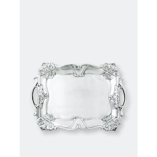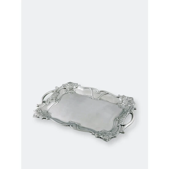 Detailed fleur-de-lis symbols rest in each corner of this piece, while sturdy, arching flourishes form the dish’s handles. Situated on opposite sides, stylish lines complete the elegant symmetry of this handmade, aluminum tray.Fill your table with this generously sized Fleur-De-Lis Rectangle Tray from Arthur Court.