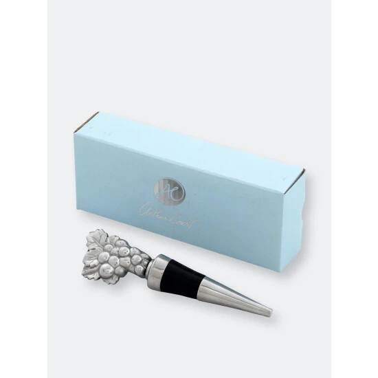 Squeeze some extra flavor into your next wine night with this Grape Bottle Stopper from Arthur Court. A realistic bundle of grapes stands vertically on top of this piece as veiny leaves wedge themselves in between the fruit. The handmade, aluminum design shrinks towards one end in a unique reflection of the stopper’s shape.