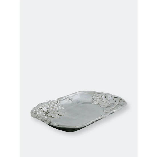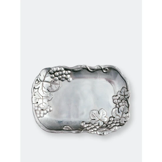 Welcome the spirit of the vineyard onto your table with this Grape Catch All from Arthur Court. Grapes and leaves mix in each corner as vines sweep around the edge of this piece. Heavy lines define each vein in the leaves, while the rounded features of the fruit give this handmade, aluminum dish a realistic appeal.