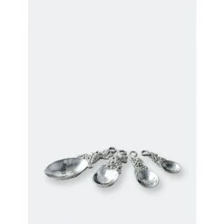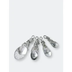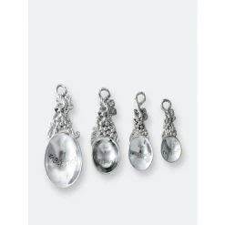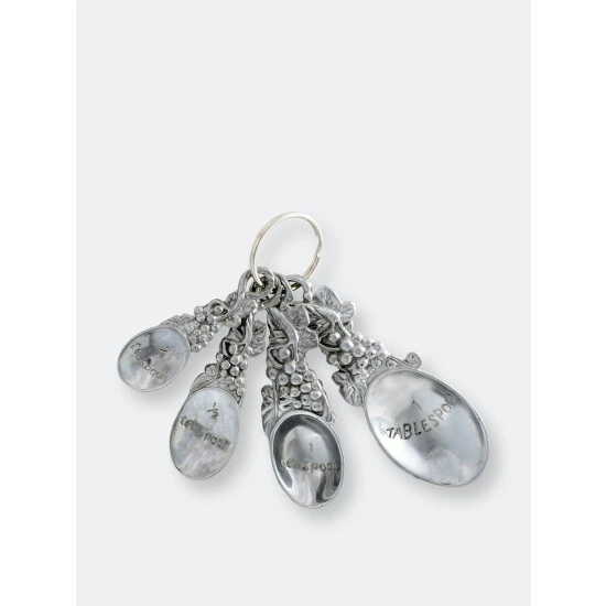 Supply the ingredients for a beautiful cake with these elegant Grape Measuring Spoons from Arthur Court.Bundles of grapes, leaves and vines form the handles and give each spoon a unique grip. Handcrafted from lustrous aluminum, this four-piece set features incredible definition within each line and shape in the design. A large ring loops around the end of each spoon to hold them together.