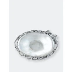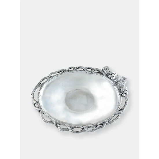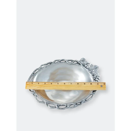Entice the family to eat healthier with this attractive Grape Open Vine Vegetable Dish from Arthur Court.An openwork pattern of thick, intricate vines borders the top and base of this piece, save for a small collection of grapes and leaves on the dish’s rim. The elevated interior looks especially smooth and lustrous against the rest of this handmade, aluminum design.