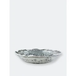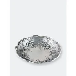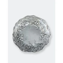 Twisting vines create the openwork border on the edge of this dish, while bundles of grapes and leaves nestle into the sides of the interior. The incredible definition captured within the robust grapes and veiny leaves makes this handmade, aluminum bowl seem half full. Settle your favorite noodle dish into the attractive bed of fruit and foliage in Arthur Court’s Grape Pasta Bowl.