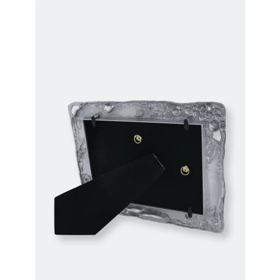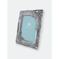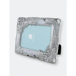 Create a Tuscan-inspired ambiance with this Arthur Court grape photo frame featuring thick borders replete with vines, leaves and fruit. The buffed-to-perfection lustrous silver finish imparts a sense of luxury to this timeless piece, helping your favorite photos take center stage within its neutral-hued borders. Rely on this 5 x 7-inch frame’s hand-polished sand-cast aluminum alloy construction for long-term durability, and it doesn’t tarnish, ensuring it retains its classic beauty year after year. Small gaps in the overall design infuse your table displays with depth and dimension and help the frame’s contents stand out even more. Use this chic frame to showcase wedding or family photos in your entryway, or take advantage of the attractive gift box by presenting it to friends and family when celebrating a special occasion or event. Maintenance of this frame requires only a quick wipe-down with a damp cloth for extra convenience.Bundles of grapes and leaves cover three corners of this piece in realistic detail, while unpredicatable vines create fashionable gaps in the design. Handcrafted in sand-cast aluminum, this frame’s unique layout and remarkable defintion make it a must-have décor item.