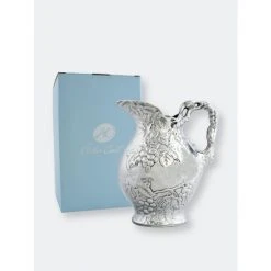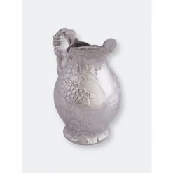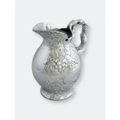 Plump bundles of grapes spring up all over this piece as veiny leaves and swirling vines inject themselves into the fruity designs. The unpredictability of these vines influence the unique shape of the pitcher’s handle and mouth. Heavy lines distinguish the detailed motifs from the surrounding aluminum in this handmade pitcher. Produce an instant reaction from your guests when you unveil this best-selling Grape Pitcher from Arthur Court.