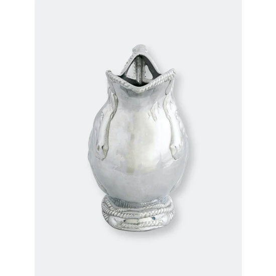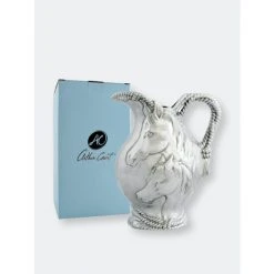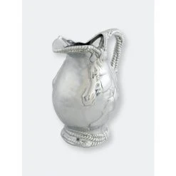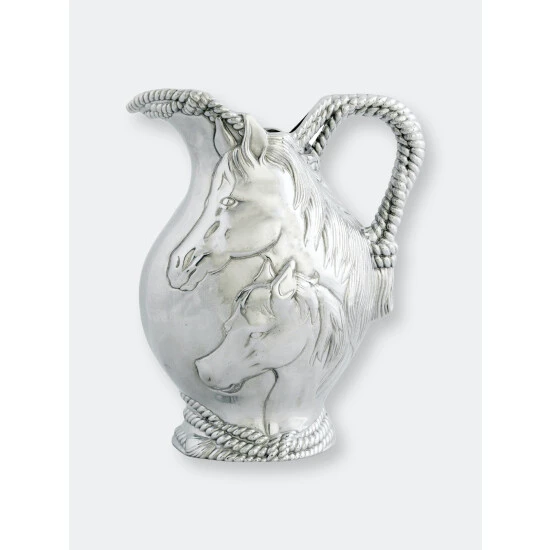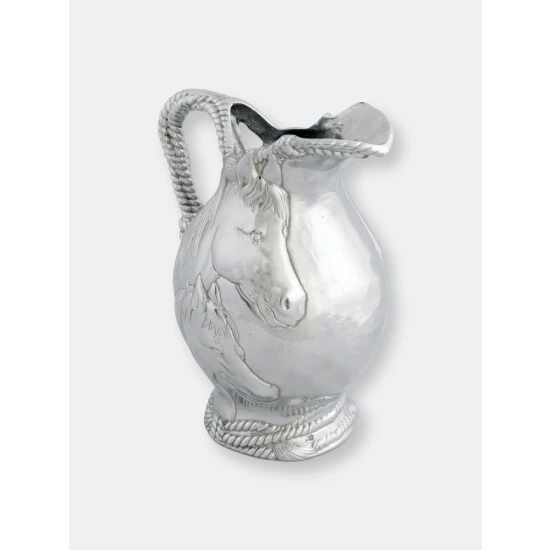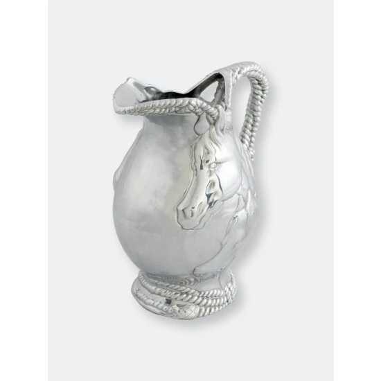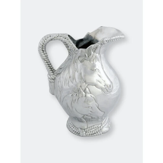 Absorb every striking detail of Arthur Court’s Horse and Rope Pitcher as you use it for full effect. Indented ropes twist around each other to create the beautifully textured base and handle of this piece. Horses exhibit tremendous realism in their faces and manes as they display in the center of this handmade, aluminum pitcher.