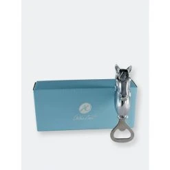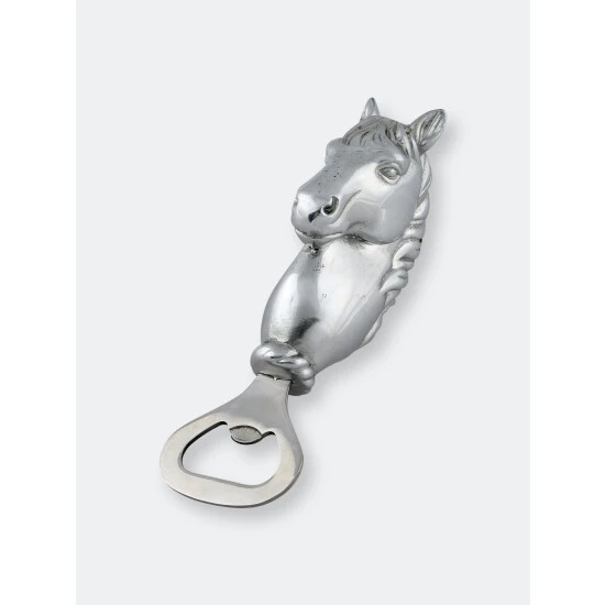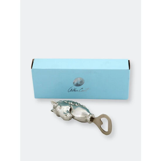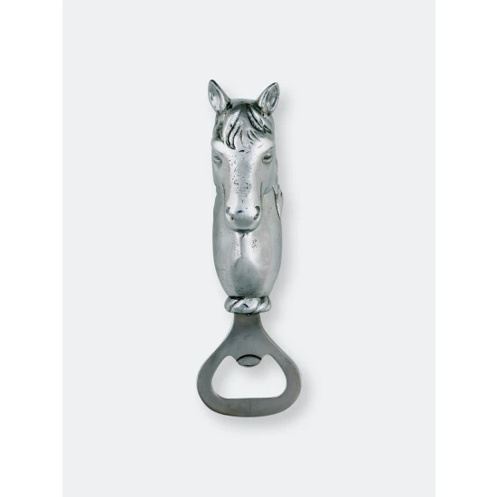 In the early days of American history, the horse eased the burden on families on cross-country adventures to new homes, and the wild open range still calls to our cultural memories. This horse bottle opener from Arthur Court commemorates those days at the same time that it provides a signature piece as noble and helpful as the equines of our ancestors. The aluminum alloy construction gives this elegant barware a silver sheen that doesn’t tarnish, and the sturdy opener puts real horsepower behind your efforts to access your favorite beverage. The textured mane and wide dimensions of this beautiful horse give you a firm grip during use. Whether your next adventure is poker night at the neighbors or a fancy shindig across town, tote this lightweight Arthur Court horse bottle opener along for the ride. At 2 x 6.5 inches, it’s easy to stable in a drawer or display in your home bar area.A beautiful horse head adorns this piece, its stoic demeanor reflecting the honor bestowed upon these animals. The lifelike detail in its perky ears and elongated muzzle only accentuate this handmade, aluminum opener.