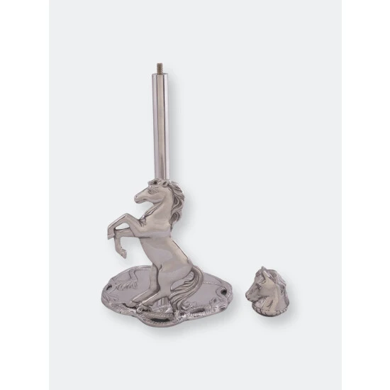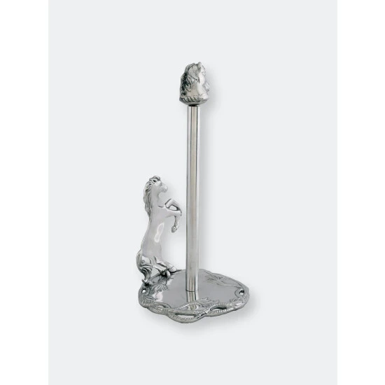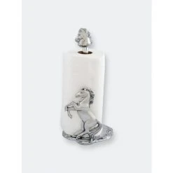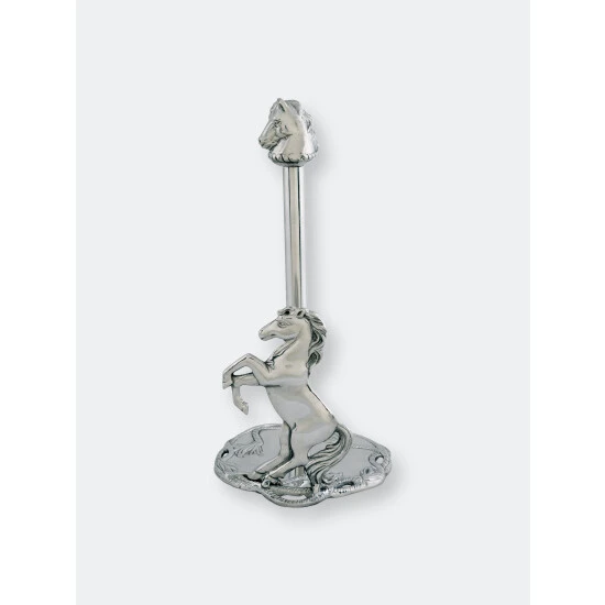 Present the lively pair in Arthur Court’s Horse Paper Towel Holder for a guaranteed reaction.A stallion rears at the base of this handmade, aluminum piece in an apparent attempt to get closer to the statuette above. Twisting ropes form a textured base underneath the horse, while its hooves and face highlight the lifelike detail in this design.