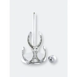 Reflect your passion for riding in any area of the home with this Horseshoe Towel Holder from Arthur Court.Handcrafted in Arthur Court’s signature aluminum, this piece features a long, thick bar extending up from the circular base to support the towels, while a horseshoe stands on its toe next to the pole. Realistic nail markings display inside curved pockets on either side of this design, which looks exceptionally distinguished against the smooth, lustrous surfaces around it.
