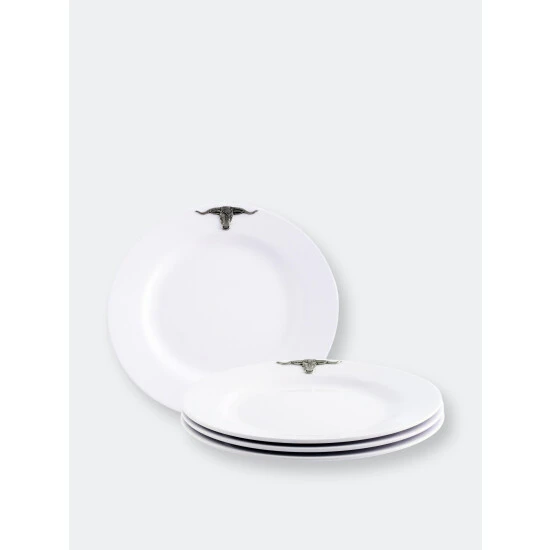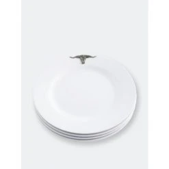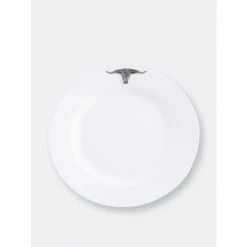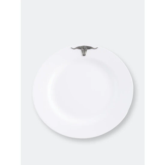 It is said that the best color for presenting food is white – and Arthur Court agree! White dishes make food look more elegant and appetizing. Our pure white Melamine resin is durable, fire and heat resistant and virtually unbreakable the perfect plate for outdoor dining. In true Arthur Court style, a detailed pewter metal Longhorn is attached to rim to create classic dinnerware that will stand up to outdoor use on the ranch but formal enough for indoor dining.