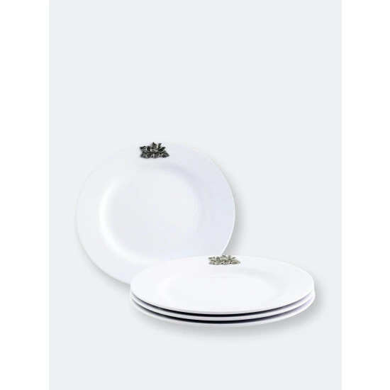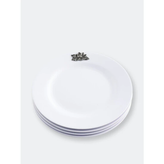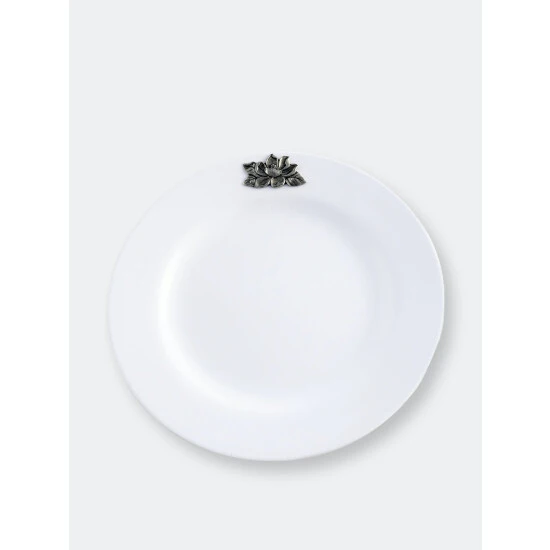It is said that the best color for presenting food is white – and Arthur Court agree! White dishes make food look more elegant and appetizing. Our pure white Melamine resin is durable, fire and heat resistant and virtually unbreakable the perfect plate for outdoor dining. In true Arthur Court style, a detailed pewter metal Magnolia is attached to rim to create classic dinnerware that will stand up to outdoor use but formal enough for indoor dining.