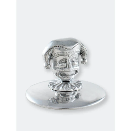 A whimsical and detailed bust of a Mardi Gras Jester acts as the finial / handle on this hand-crafted, handsome, Mardi Gras themed napkin weight. Anchored by a 3.5-inch aluminum disk to provide ample cover and weight to keep a stack of napkins orderly even when enjoying a breezy al fresco gathering.