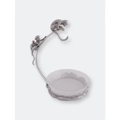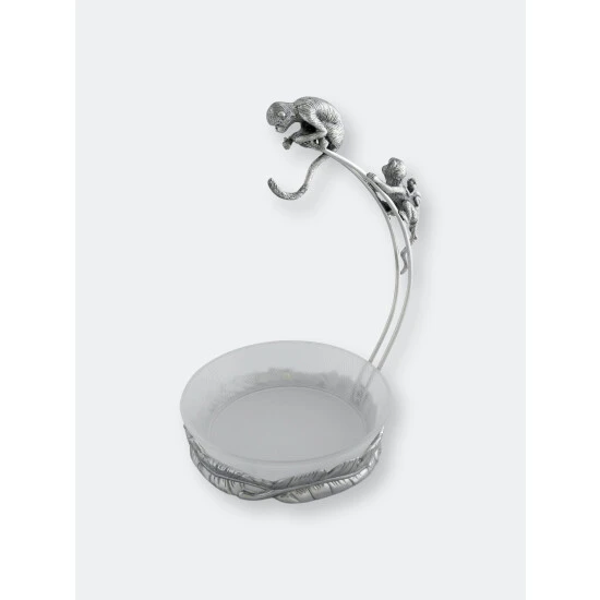 Keep a close eye on your favorite fruit with the sneaky animals in Arthur Court’s Monkey Banana Holder with Bowl lurking around.Thin bars extend off the holder’s base before arching high enough to hang a hook for the bananas. Two, energetic monkeys wait on the top of this structure as they plot the best way to remove the delicious, yellow fruit. Detailed leaves form the base as they wrap around the removable, glass bowl in this handmade, aluminum design.