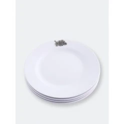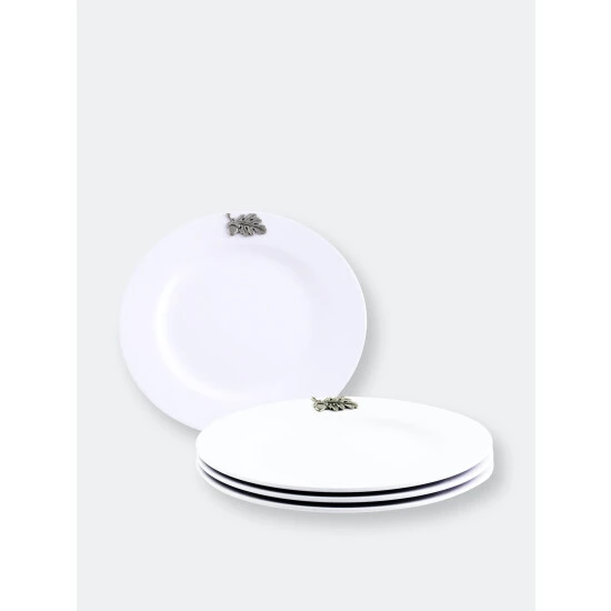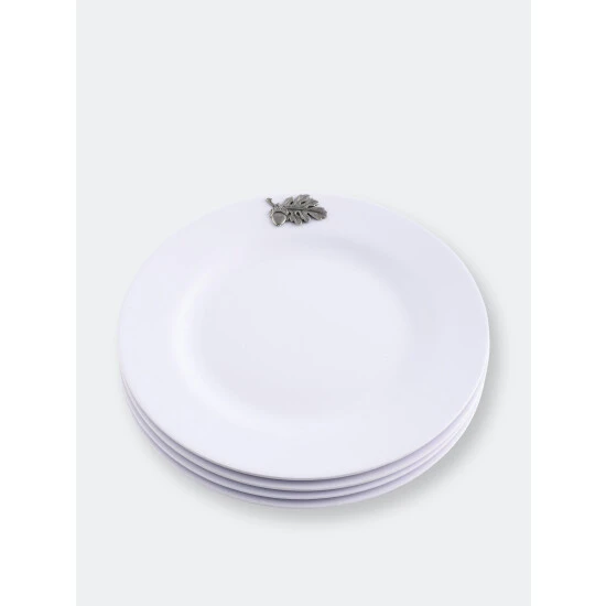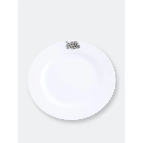 It is said that the best color for presenting food is white – and Arthur Court agree! White dishes make food look more elegant and appetizing. Our pure white Melamine resin is durable, fire and heat resistant and virtually unbreakable the perfect plate for outdoor dining. In true Arthur Court style, a detailed pewter metal Acorn and Oak Leaf is attached to rim to create classic dinnerware that will stand up to outdoor use but formal enough for indoor dining.