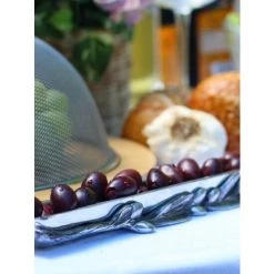 For a boatload of fun at your next party, float special treats on your table in Arthur Court’s Olive Pattern Canoe Serving tray.An eye-catching serving tray for fine treats meant to be savored one by one. Arthur Court’s hand-crafted Olive pattern serving tray delivers tidbits in high style. Created from our signature, sand-cast aluminum alloy, this boat style, long, narrow tray is embellished with a raised olive branch motif. A perfect showcase for fine olives, chocolates, truffles; any special treat presentation.