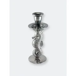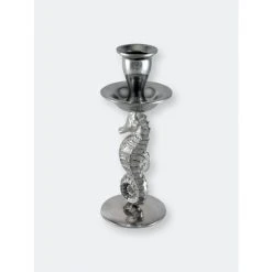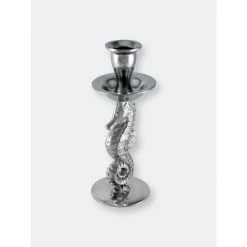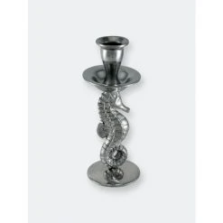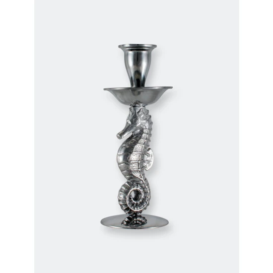 Not so bright as a lighthouse yet lighting up your ocean décor and the faces of your guests, this Arthur Court Seahorse Candlestick is a full figure seahorse with delightful, unexpected details. Our swimming seahorse carries a perfectly balanced taper candle cup on its head. A full circle drip tray surrounds the candle cup to protect your linens or furnishings from melting wax.